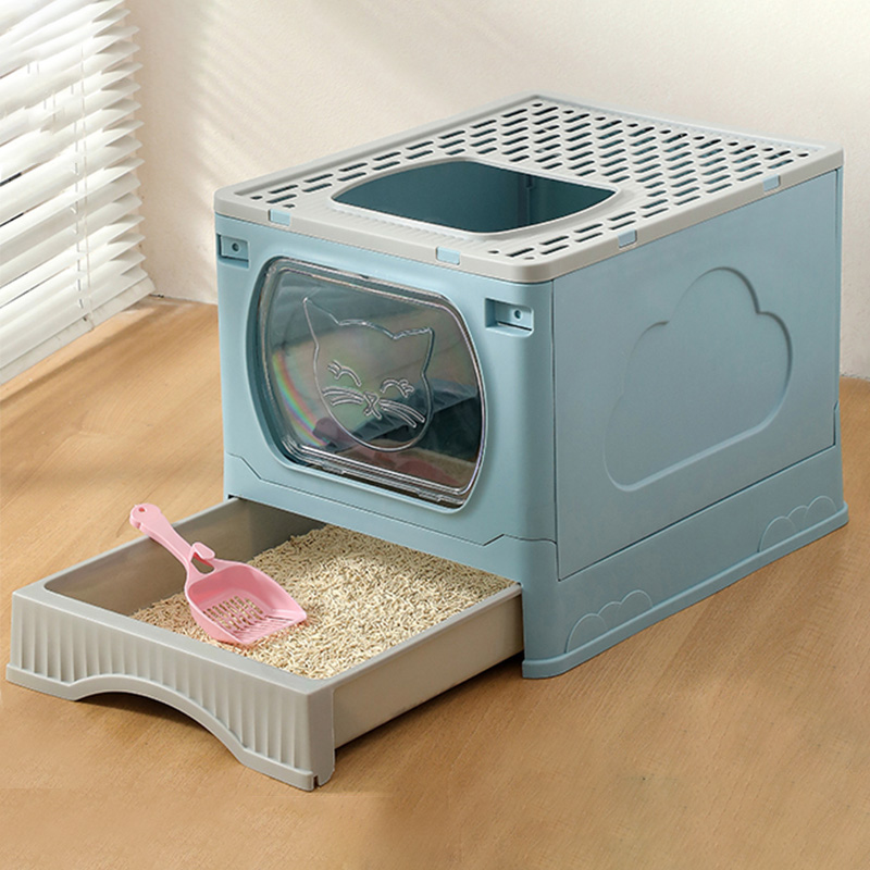 Folding Pull-Out Semi-Enclosed Cat Litter Box