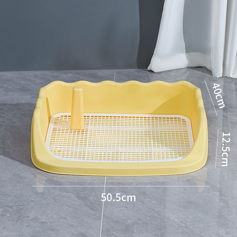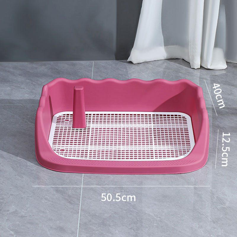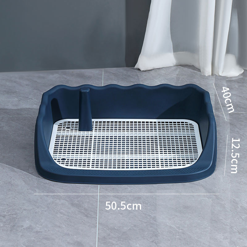 The high-walled dog toilet with a central post is designed to provide a practical and hygienic solution for pet owners. This product features an increased height and larger dimensions, measuring 50.5 cm in length, 40 cm in width, and 12.5 cm in height, ensuring a spacious area for dogs of various sizes. The raised edges and central post effectively prevent accidents by containing waste within the designated area, minimizing mess and splashes.