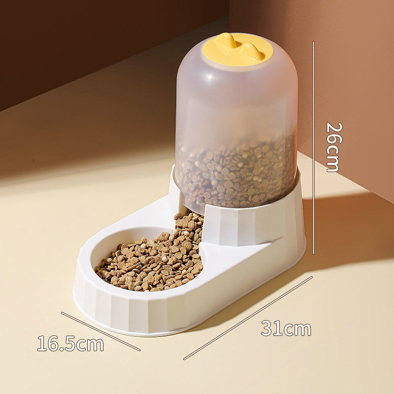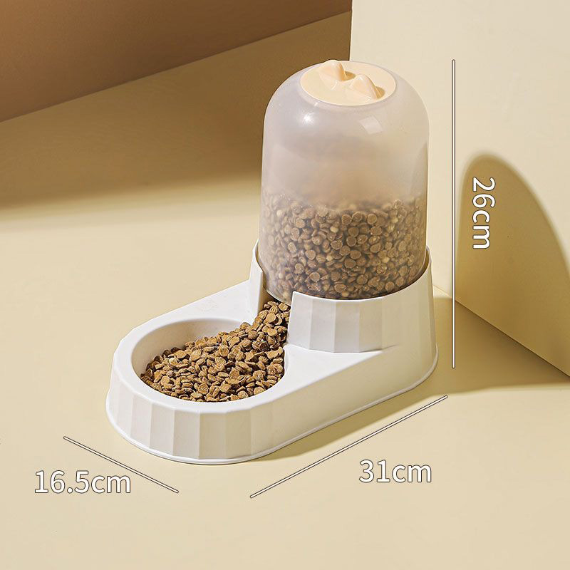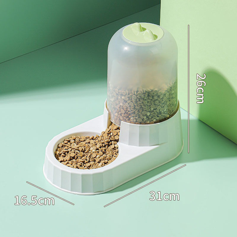 The dimensions of the feeder are 31cm long, 16.5cm wide, and 26cm high, which is suitable for placement in any corner of the home without taking up too much space. Its internal design is reasonable, which can accommodate enough pet food to ensure that the pet can eat on time when the owner is not at home. The transparent grain storage barrel design allows the owner to clearly see the remaining amount of food and replenish it in time to prevent the pet from running out of food.
