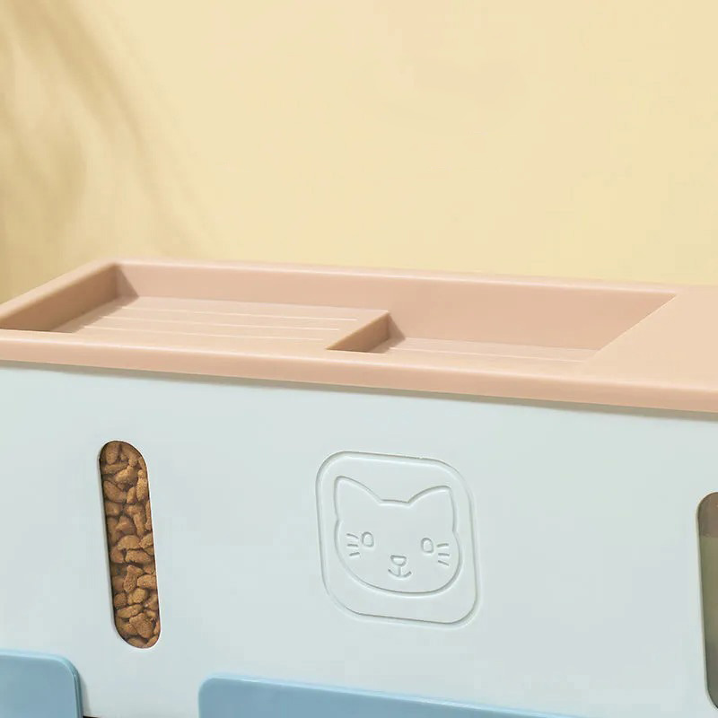 The feeder's construction ensures easy cleaning and maintenance, with removable bowls that can be washed separately. The use of PP material also means that the feeder is resistant to rust and corrosion, ensuring a longer lifespan. Overall, this house-shaped pet feeder is a practical and stylish solution for pet owners who want to provide their pets with a reliable and convenient feeding system without the need for electricity.