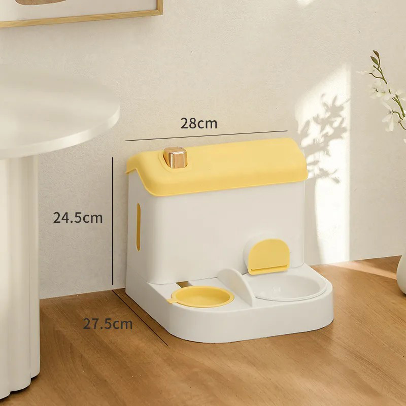 Crafted from high-quality materials, the dispenser promotes pet health and safety. The transparent water container makes it easy to monitor water levels, and the food dish is designed to be easy to clean, maintaining hygiene and preventing food spoilage.