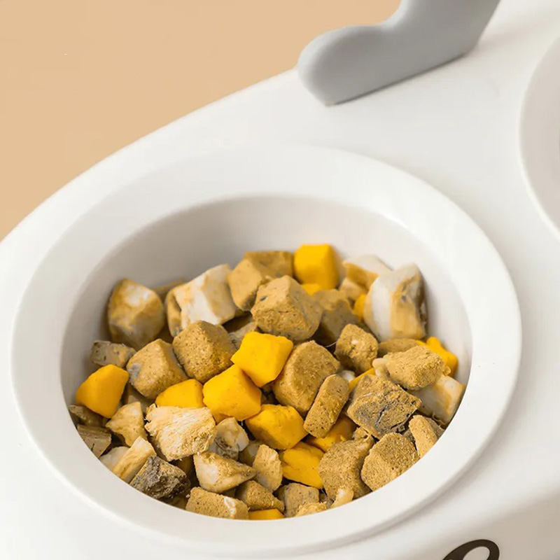 Made from durable, food-safe plastic, the surface is easy to clean and resistant to tipping, making mealtimes less messy. The detachable bowls are convenient for washing, and the elevated structure keeps the food area more hygienic.